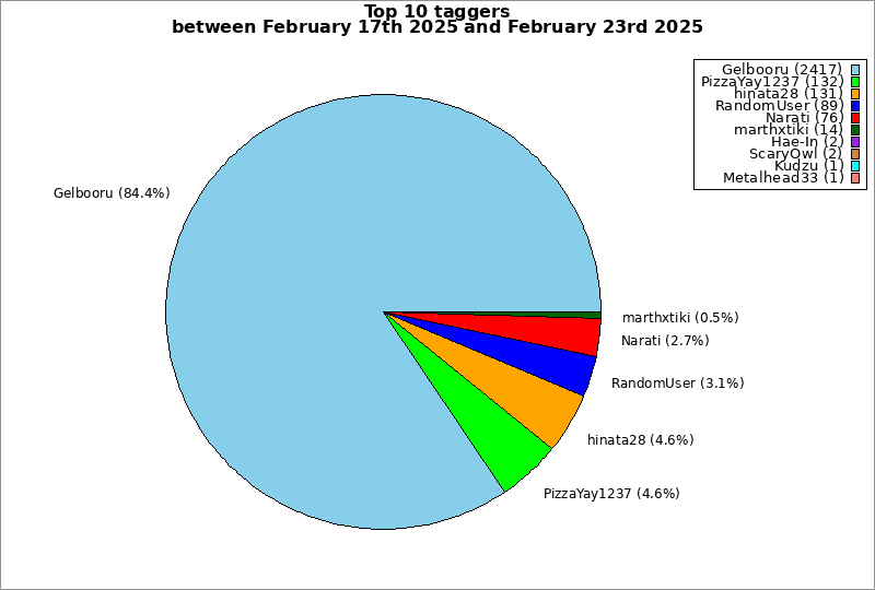 | Top 10 taggers between February 17th 2025 and February 23rd 2025 | ||
