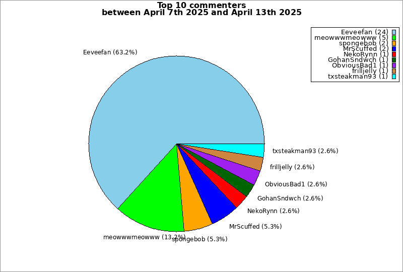 | Top 10 commenters between April 7th 2025 and April 13th 2025 | ||
