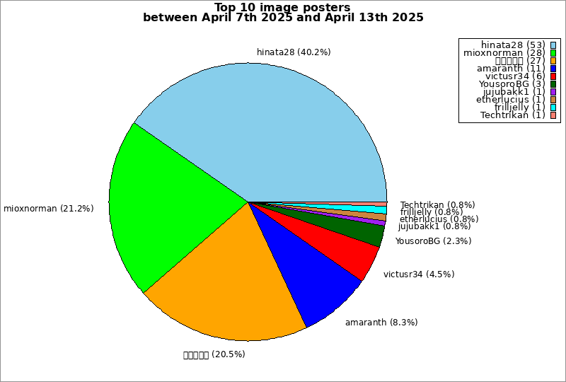 | Top 10 image posters between April 7th 2025 and April 13th 2025 | ||