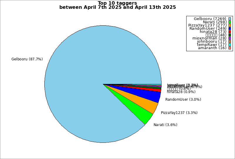 | Top 10 taggers between April 7th 2025 and April 13th 2025 | ||