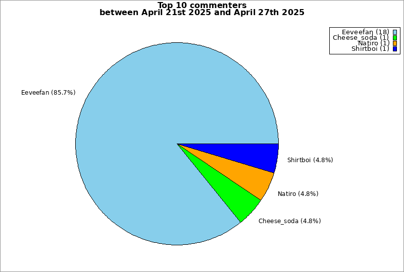 | Top 10 commenters between April 21st 2025 and April 27th 2025 | ||