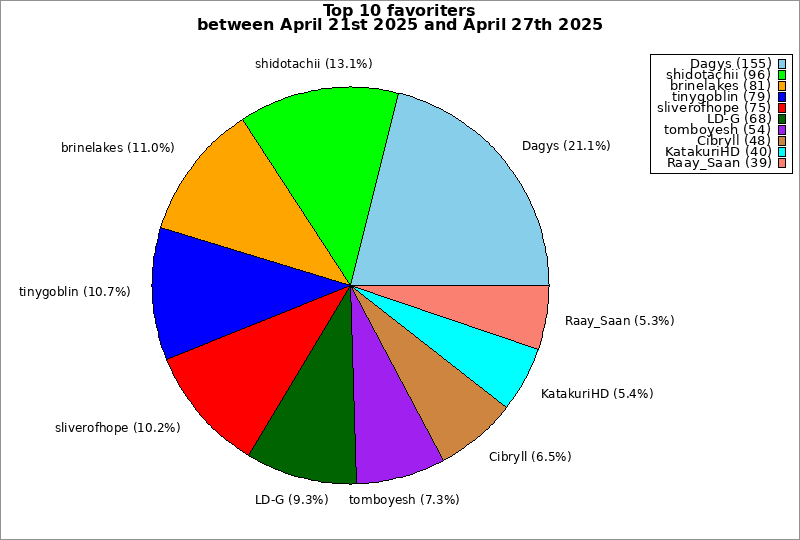 | Top 10 favoriters between April 21st 2025 and April 27th 2025 | ||
