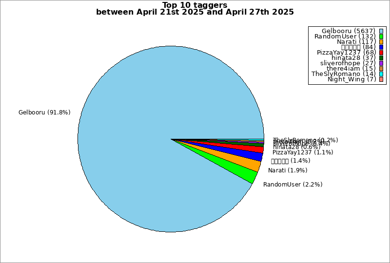 | Top 10 taggers between April 21st 2025 and April 27th 2025 | ||