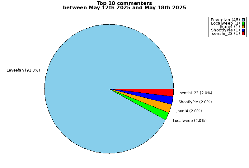 | Top 10 commenters between May 12th 2025 and May 18th 2025 | ||
