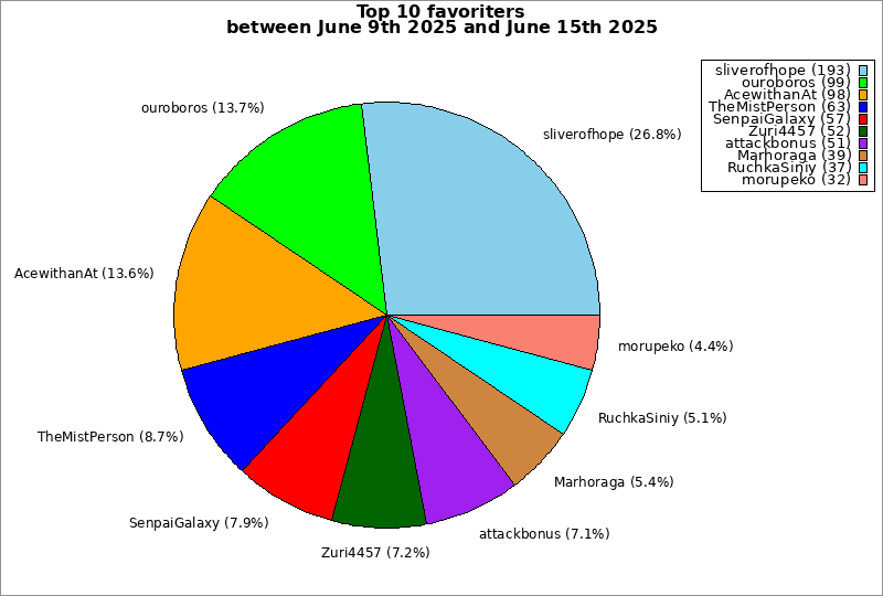| Top 10 favoriters between June 9th 2025 and June 15th 2025 | ||