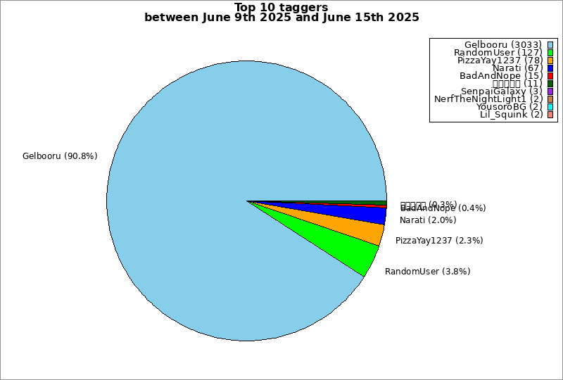 | Top 10 taggers between June 9th 2025 and June 15th 2025 | ||