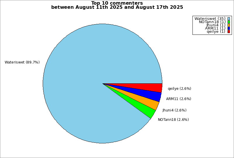 | Top 10 commenters between August 11th 2025 and August 17th 2025 | ||