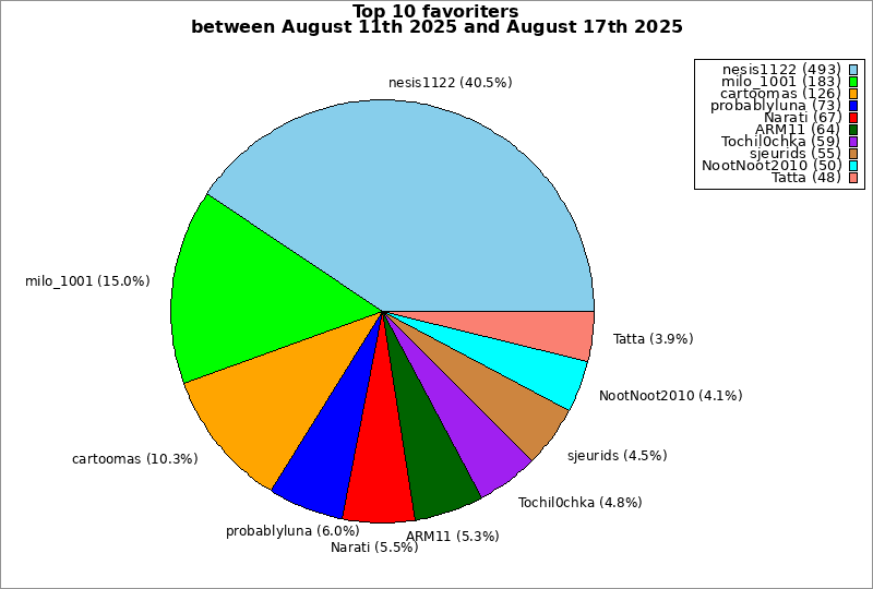 | Top 10 favoriters between August 11th 2025 and August 17th 2025 | ||