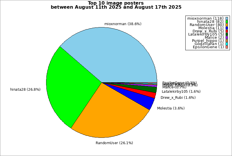 | Top 10 image posters between August 11th 2025 and August 17th 2025 | ||