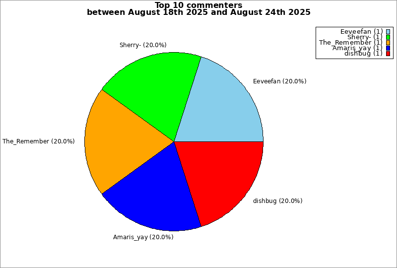 | Top 10 commenters between August 18th 2025 and August 24th 2025 | ||