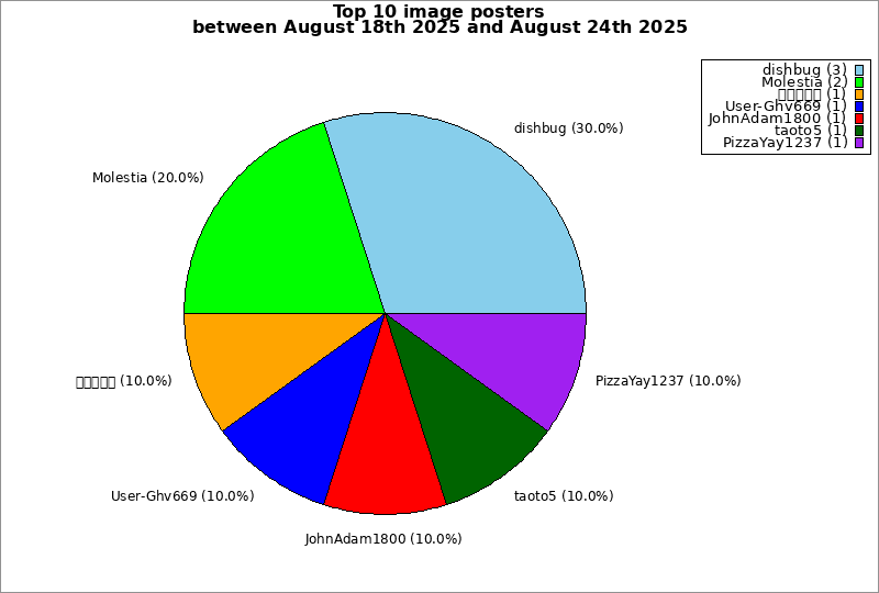 | Top 10 image posters between August 18th 2025 and August 24th 2025 | ||