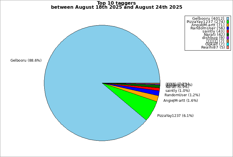 | Top 10 taggers between August 18th 2025 and August 24th 2025 | ||