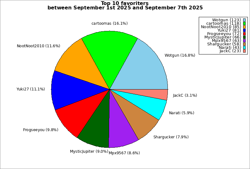 | Top 10 favoriters between September 1st 2025 and September 7th 2025 | ||