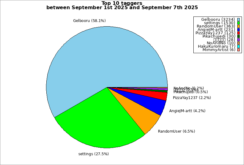 | Top 10 taggers between September 1st 2025 and September 7th 2025 | ||