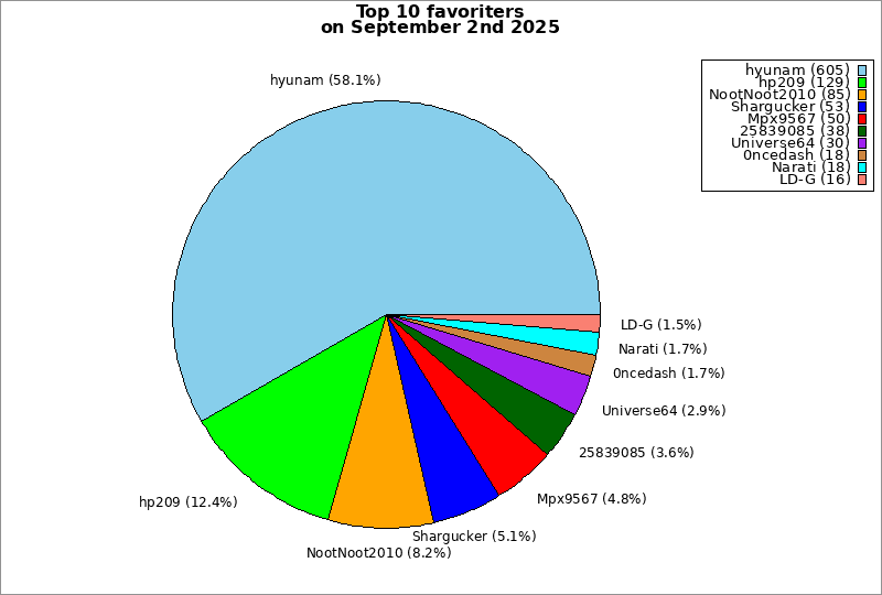 | Top 10 favoriters on September 2nd 2025 | ||