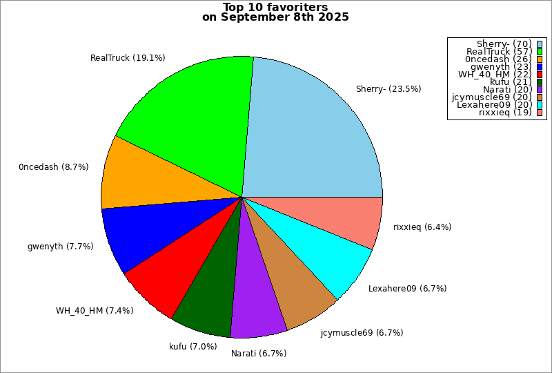 | Top 10 favoriters on September 8th 2025 | ||