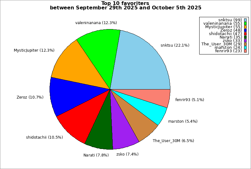 | Top 10 favoriters between September 29th 2025 and October 5th 2025 | ||
