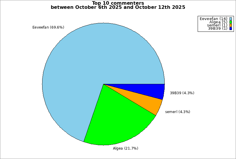 | Top 10 commenters between October 6th 2025 and October 12th 2025 | ||
