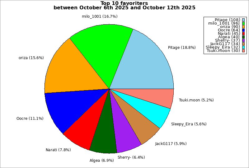 | Top 10 favoriters between October 6th 2025 and October 12th 2025 | ||