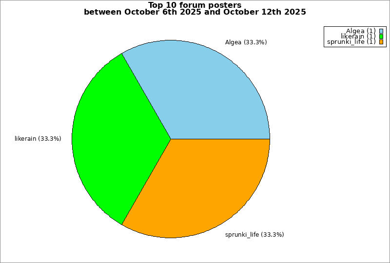 | Top 10 forum posters between October 6th 2025 and October 12th 2025 | ||