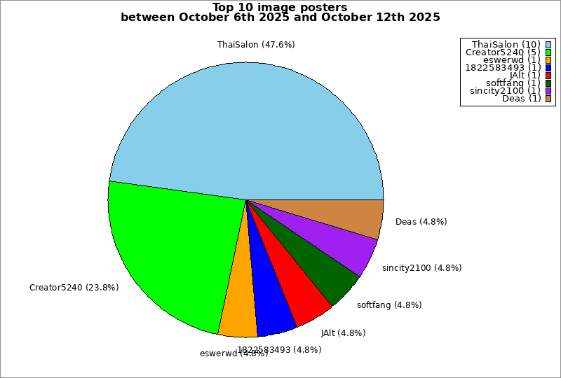 | Top 10 image posters between October 6th 2025 and October 12th 2025 | ||