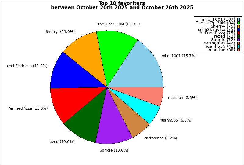 | Top 10 favoriters between October 20th 2025 and October 26th 2025 | ||