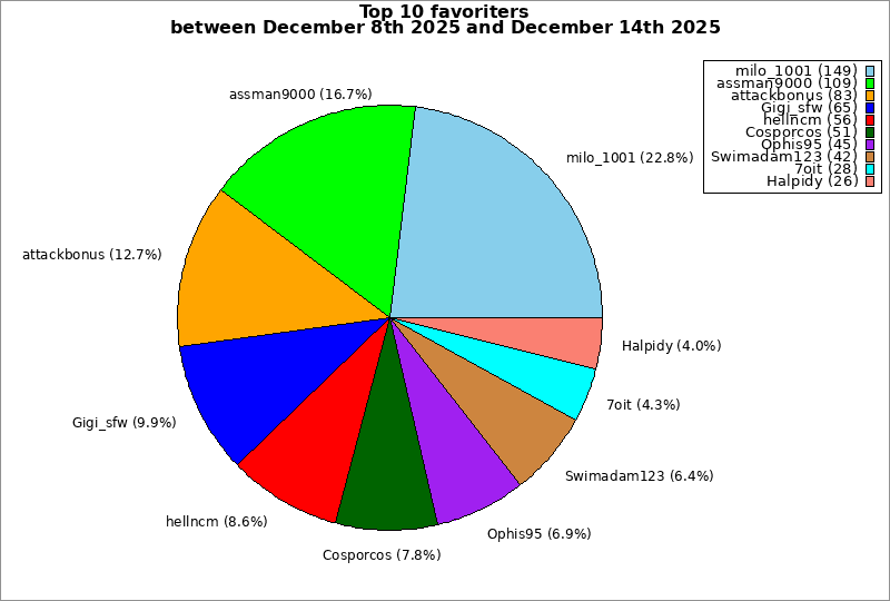 | Top 10 favoriters between December 8th 2025 and December 14th 2025 | ||