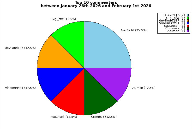 | Top 10 commenters between January 26th 2026 and February 1st 2026 | ||