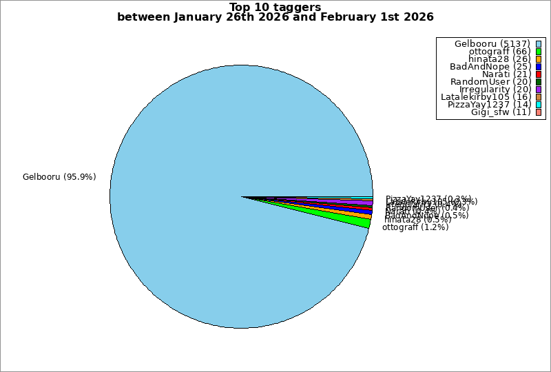 | Top 10 taggers between January 26th 2026 and February 1st 2026 | ||