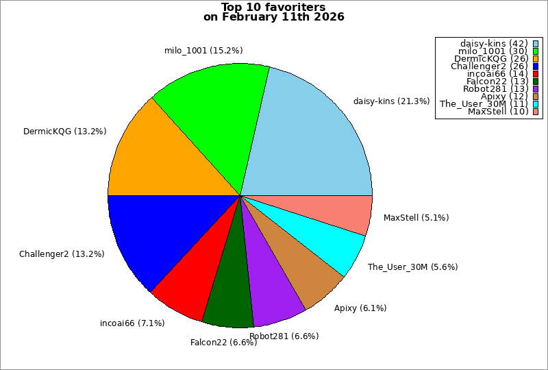 | Top 10 favoriters on February 11th 2026 | ||