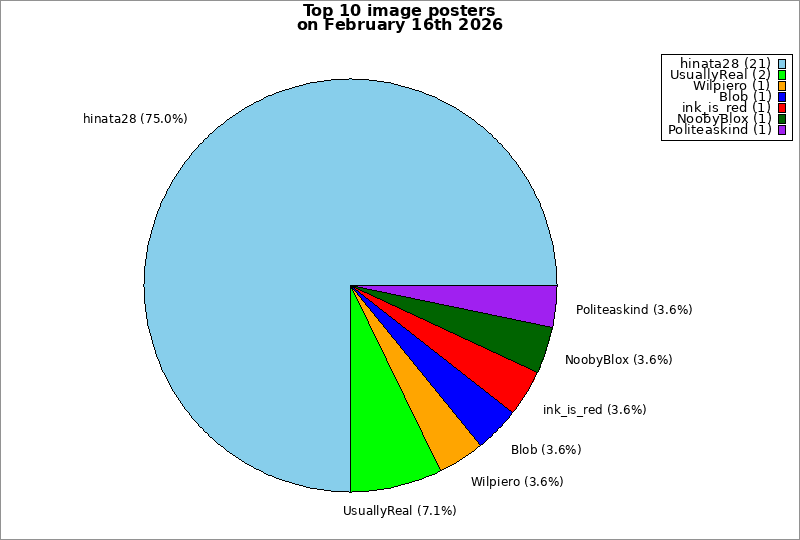 | Top 10 image posters on February 16th 2026 | ||