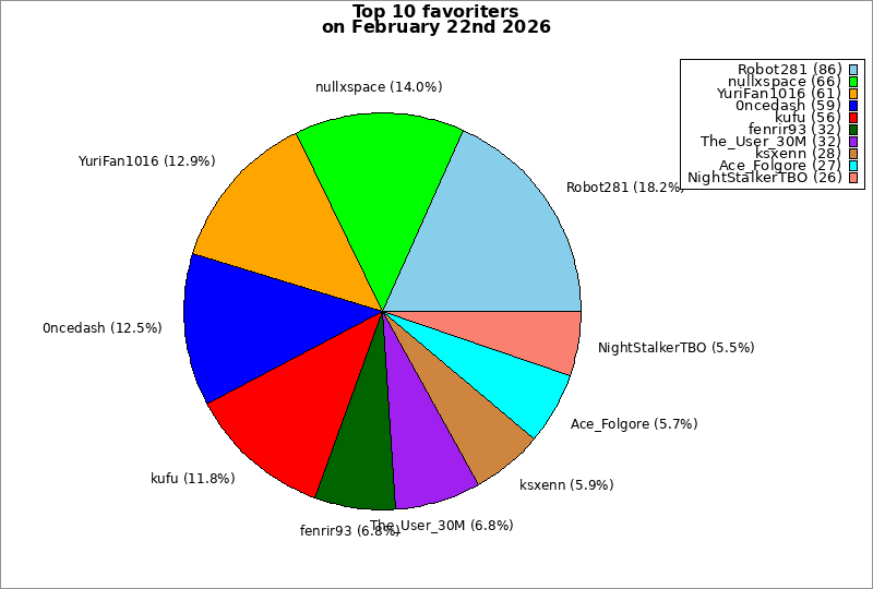 | Top 10 favoriters on February 22nd 2026 | ||