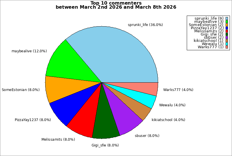 | Top 10 commenters between March 2nd 2026 and March 8th 2026 | ||
