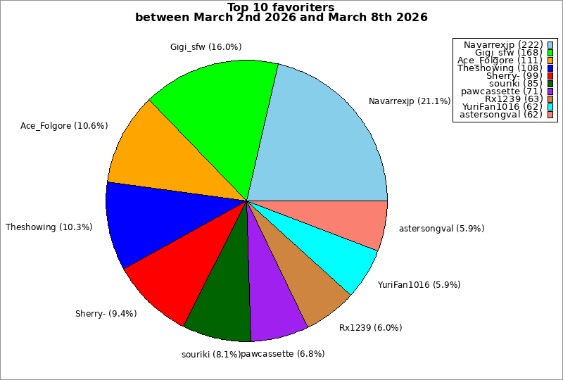 | Top 10 favoriters between March 2nd 2026 and March 8th 2026 | ||