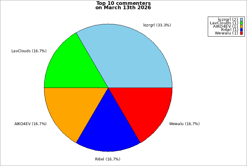 | Top 10 commenters on March 13th 2026 | ||