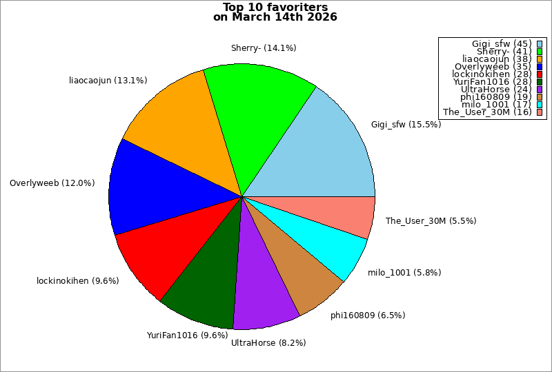 | Top 10 favoriters on March 14th 2026 | ||