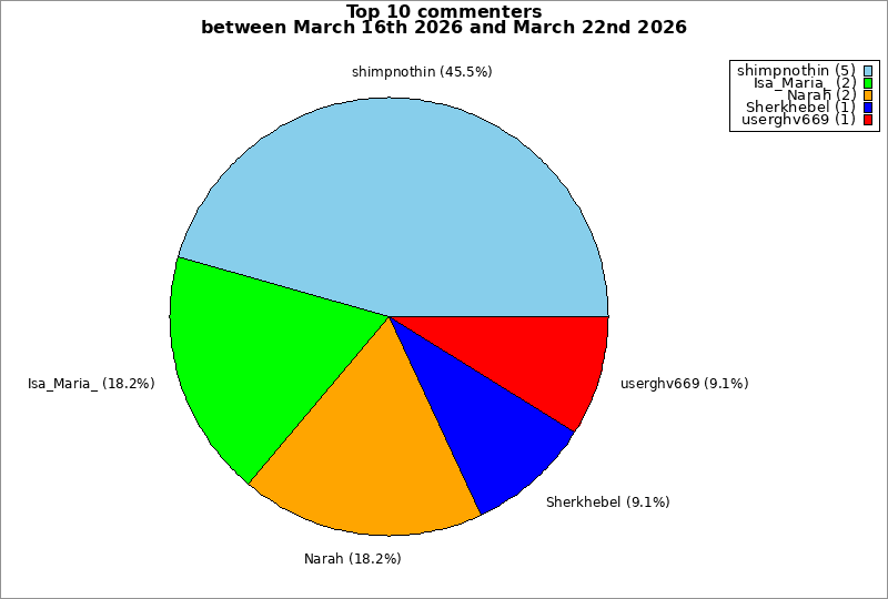| Top 10 commenters between March 16th 2026 and March 22nd 2026 | ||