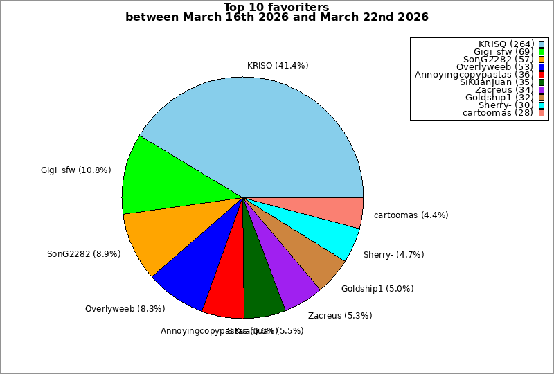 | Top 10 favoriters between March 16th 2026 and March 22nd 2026 | ||