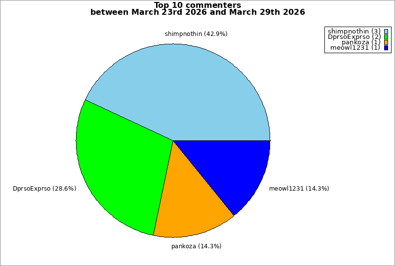 | Top 10 commenters between March 23rd 2026 and March 29th 2026 | ||