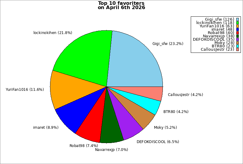 | Top 10 favoriters on April 6th 2026 | ||