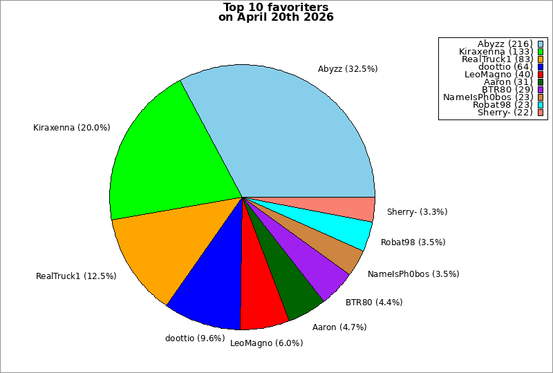 | Top 10 favoriters on April 20th 2026 | ||